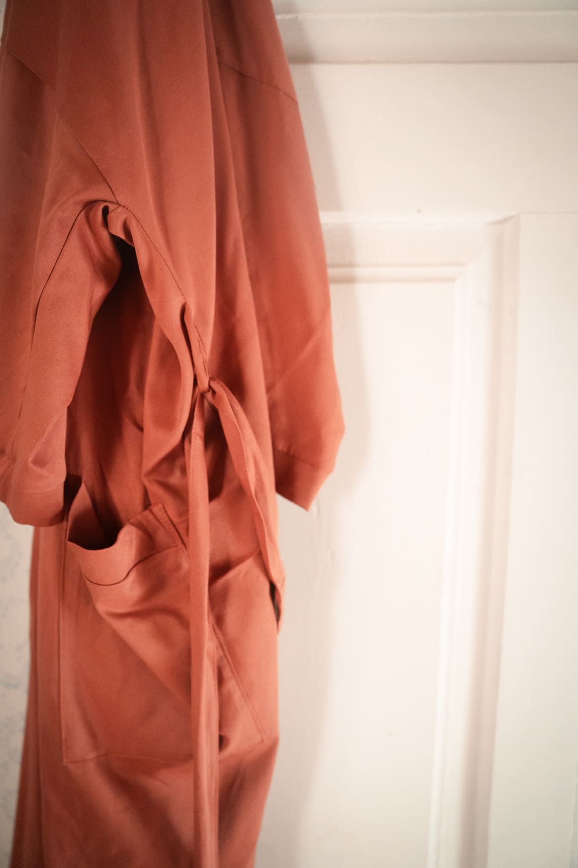 Funkcjonalność: Możesz nosić go luźno, puszczony swobodnie pięknie układa się na sylwetce, ale jeśli chcesz poczuć się bardziej otulona - sznureczki wewnątrz szlafroka pozwalają dyskretnie związać wewnętrzną połę i zapewnić lepsze dopasowanie.