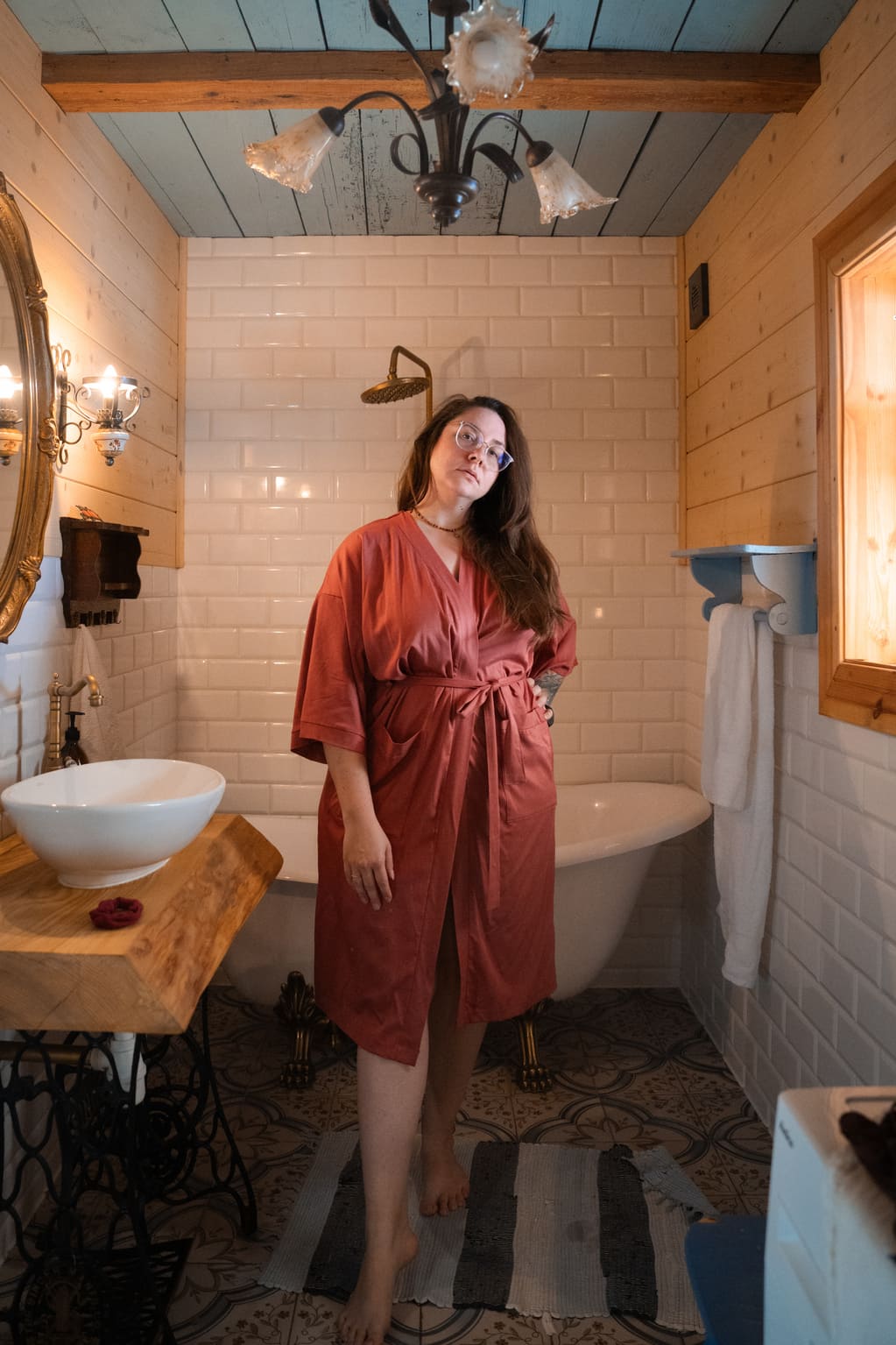 Wykonanie: Tak jak wszystkie produkty Freemina, szlafrok szyty jest na zamówienie w Polsce. Szlafroki odszywane są starannie i z sercem przez krawcową Małgosię w małej pracowni krawieckiej na północy Polski.