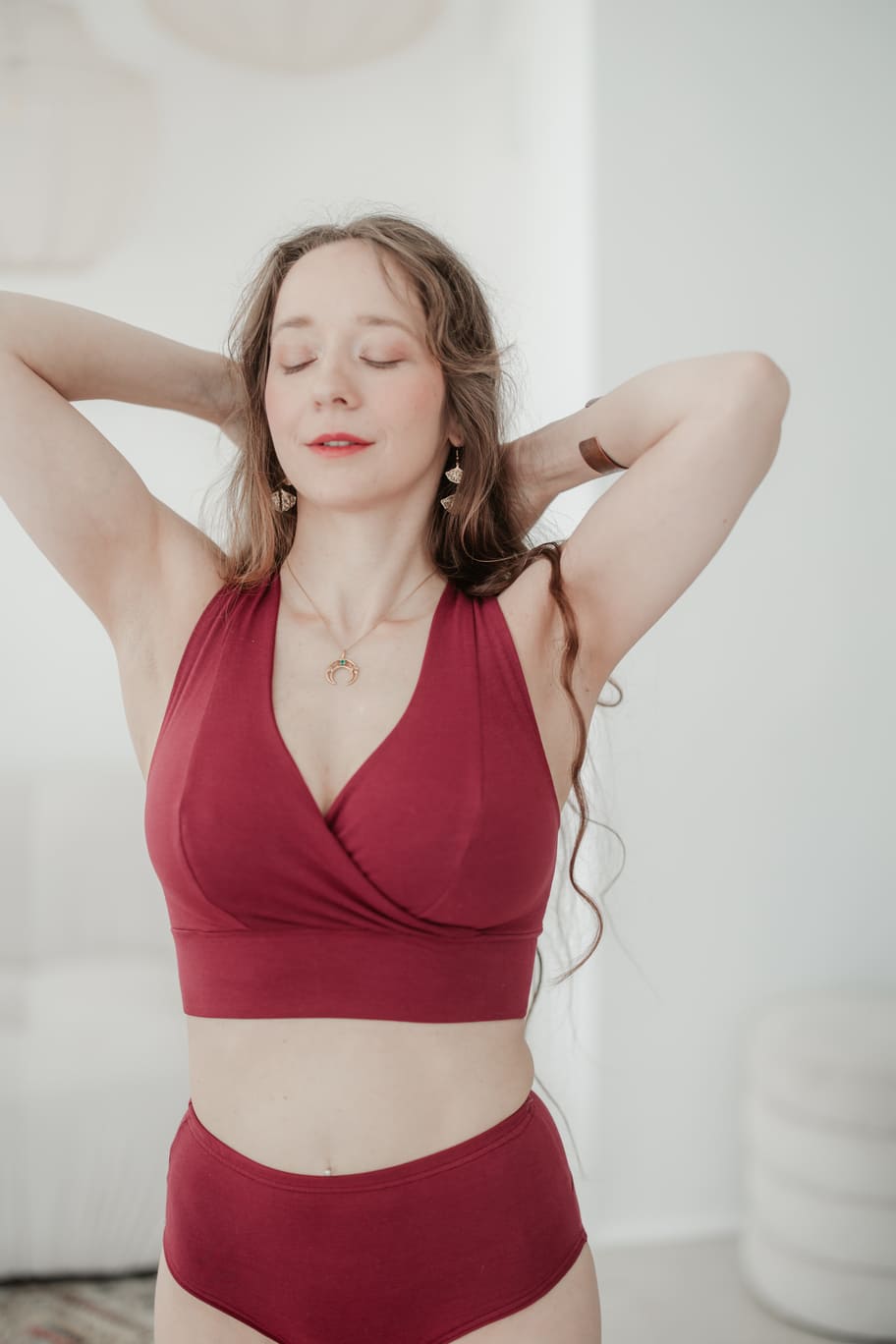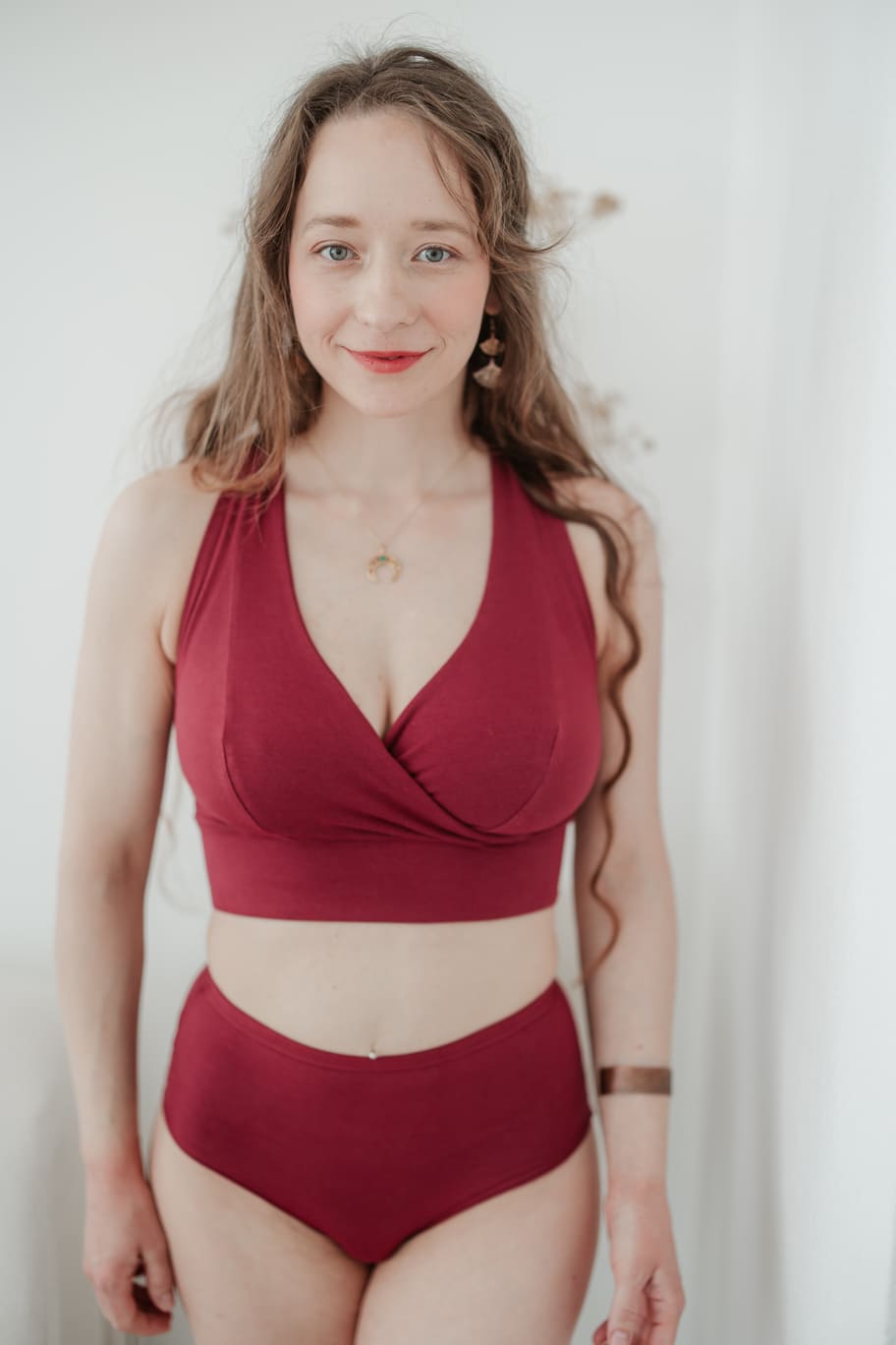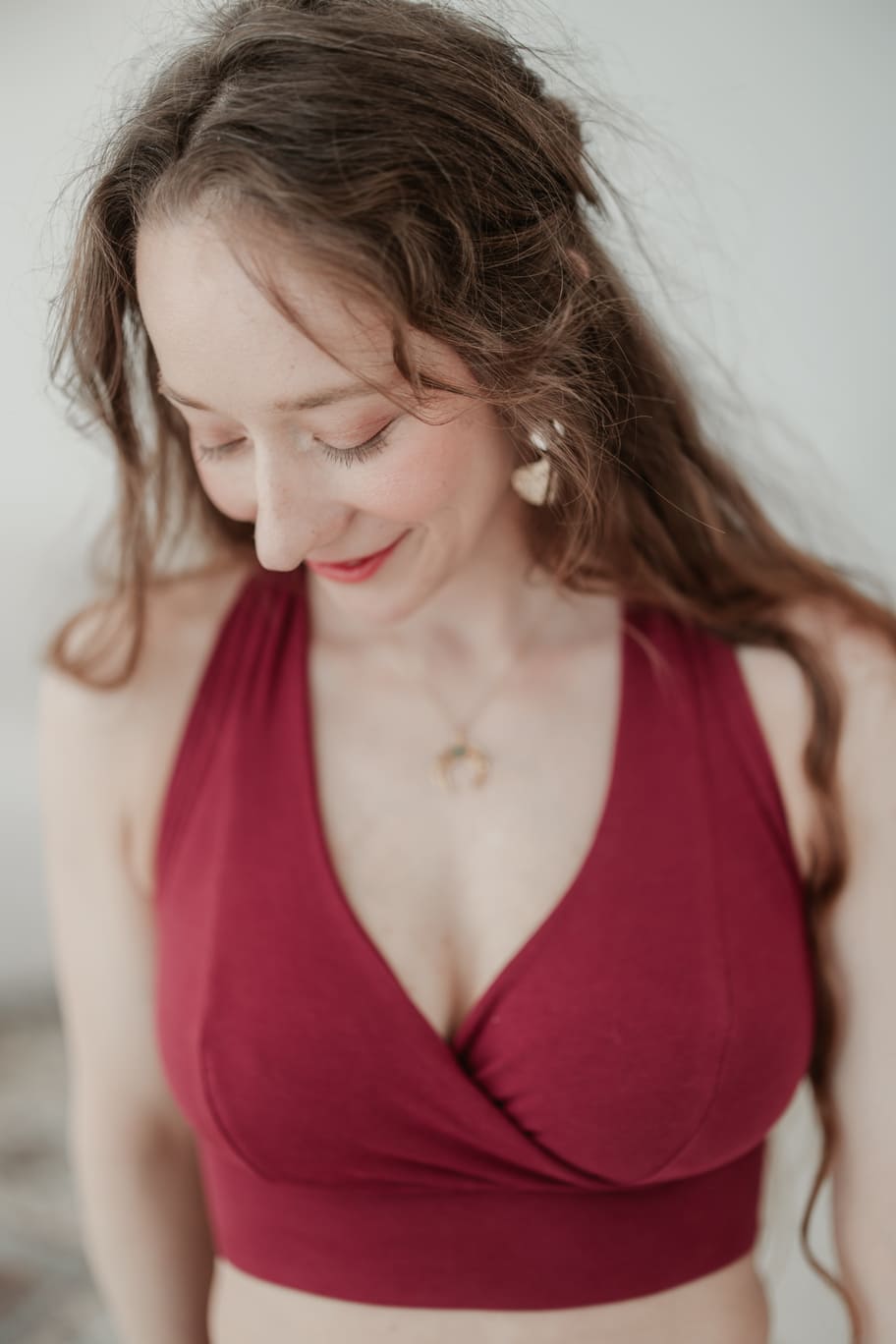 Nasz wygodny krótki top do karmienia piersią zostanie Twoim najlepszym przyjacielem. Możesz go nosić zamiast stanika pod ubraniem lub jako basicowy top, podtrzymujący jednocześnie piersi. Nie znajdziesz w nim żadnych dodatkowych elementów takich jak napy, zamki czy gumy, które mogą powodować dyskomfort.